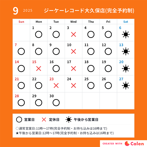 ジーケーレコード大久保店は水曜日以外毎日営業中・土曜日は午後から営業中♪秋とはいえまだ暑い!学校が始まったり、新しい職場へ移動になったりetc…生活の変化があるお客様もいらっしゃると思います。ご不要になりましたレコードやオーディオは、ジーケーレコードの買取をぜひご利用ください^^出張買取や宅配買取のご依頼もお気軽にどうぞ!出張は買い取り可能枚数LP100枚以上から、宅配買取は買い取り可能枚数が50枚以上からお受けしております。都賀店と共通のショップカードもご利用できます!リピーター割は都賀店のみでのご利用となっておりますのでご注意ください。臨時の営業時間変更等はグーグルマップでご確認ください!